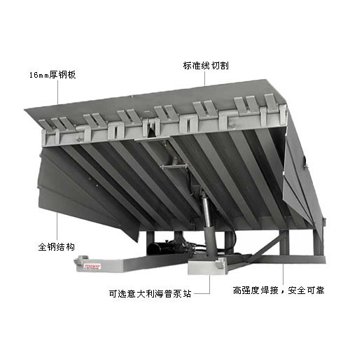 防爆固定登車橋設(shè)備簡述:性能:全液壓驅(qū)動,操作方便運行可靠;配置:焊接后無焊接殘渣,表面光滑平整;定義:采用特制異形鋼管,安全:選用防爆泵站電動機、防爆配電箱、進口密封件,真正做到防爆、防腐、防護。