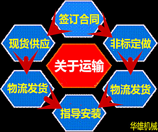 華雄機械對于常規(guī)產(chǎn)品現(xiàn)貨供應(yīng),當天訂貨,當天發(fā)貨,購買便捷。我公司按照合同規(guī)定的時間、地點,把貨物運輸?shù)侥康牡?。貨物托運后,我公司按照物流變更隨時通知收貨人。對于非標定制,我公司在預(yù)定工期內(nèi)完工之后及時通知客戶,如客戶有指定物流或快遞,我們會按照客戶要求發(fā)貨,如果客戶無特殊制定物流或快遞,我公司默認德邦物流發(fā)貨。