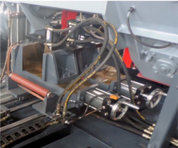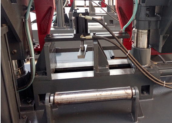 鋸床主要部件有:底坐、床身、立柱、鋸梁和傳動(dòng)機(jī)構(gòu)、導(dǎo)向裝置、工件夾緊、張緊裝置、送料架、液壓傳動(dòng)系統(tǒng)、電氣控制系統(tǒng)、潤(rùn)滑及冷卻系統(tǒng)。其操作簡(jiǎn)單耐用,液壓系統(tǒng)和減速機(jī)均選用優(yōu)質(zhì)廠家提供,質(zhì)量穩(wěn)定。切削速度液壓控制,無(wú)極調(diào)速,方便快速。雙立柱結(jié)構(gòu),垂直升降,穩(wěn)定性高??筛鶕?jù)用戶要求自行設(shè)定任意旋轉(zhuǎn)角度,可調(diào)角度在0°—45°/60°左右,操作簡(jiǎn)單。鋸床工件加緊為液壓加緊,一鍵式加緊手柄操作方便快捷。