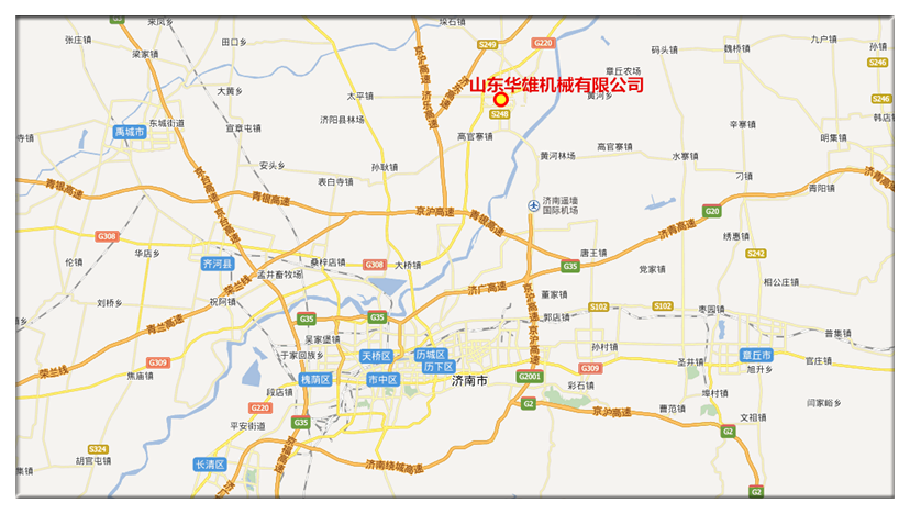 2、如果您是自駕于京滬高速,請于濟陽服務區(qū)下高速沿220國道東行1公里即到,請致電18888352017,將會有專人接到山東華雄機械有限公司